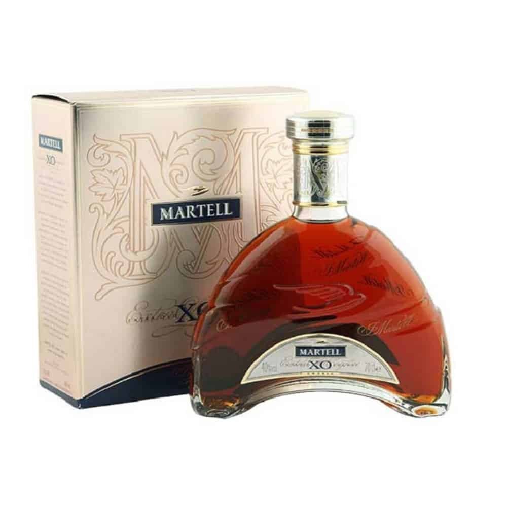 An old presentation bottle of Martell’s XO supreme cognac. A blend of eaux-de-vie from Grande Champagne, Petite Champagne, Borderies and Fins Bois to produce a rich and complex cognac that was aged in the House’s top cellars – Paradis and Purgatoire.